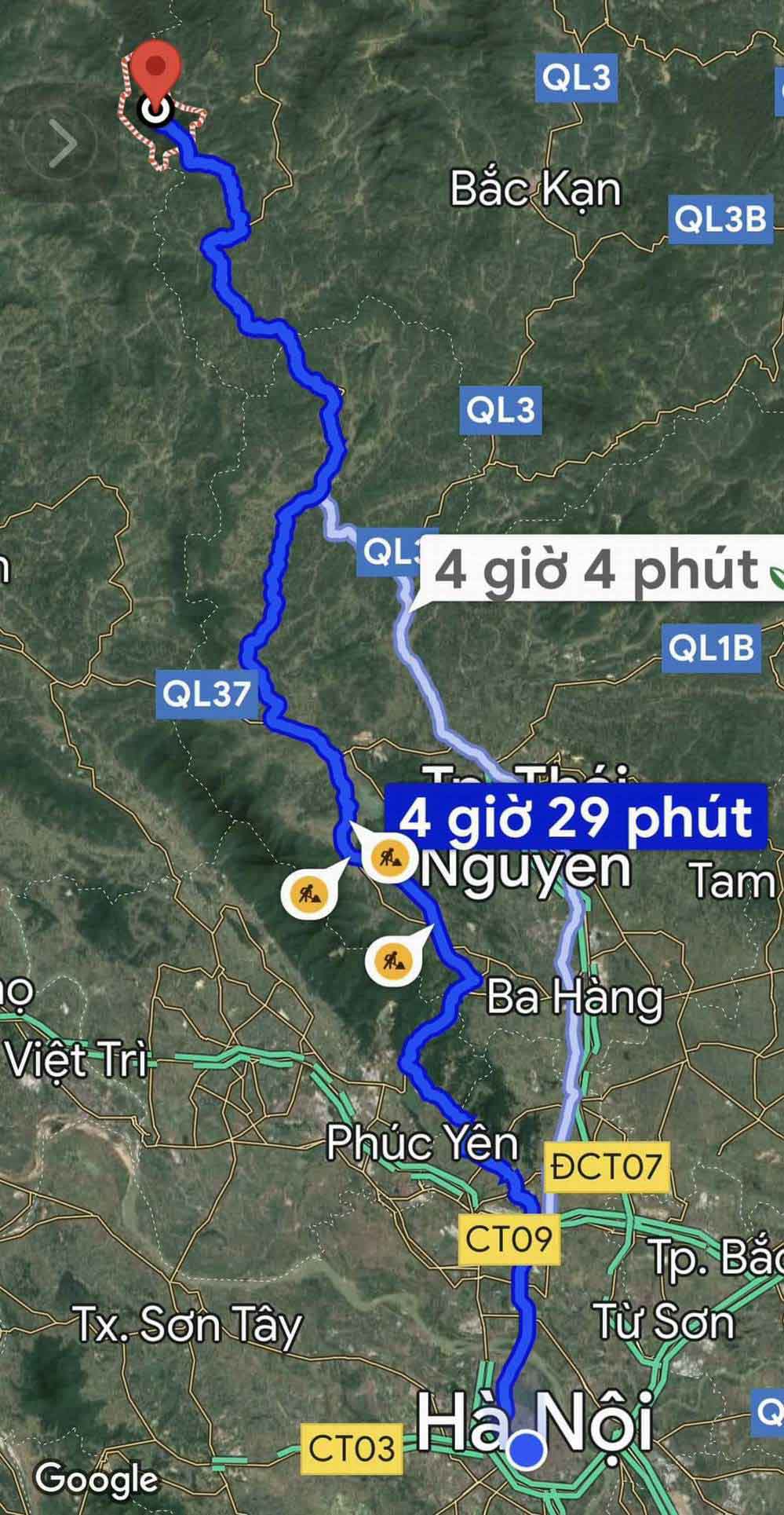 - The route according to Google map: Yen Thinh commune - Cho Don - Bac Kan will